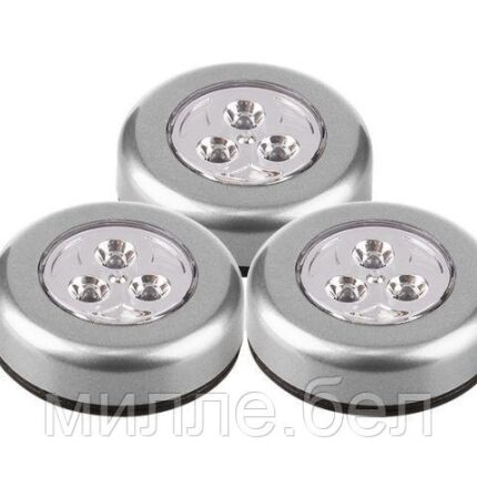 Материал: ABS-пластик, Габариты, мм: H=20, ?=68, Вес одной, г: 29, Тип батареи: 3 x AAA, Источник света: 3 DIP светодиода,