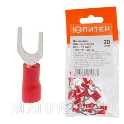 Назначение: для оконцевания методом опрессовки гибких многопроволочных проводников, Тип наконечника: вилочный, Максимальное сечение проводника: 1,5мм2, Ширина отверстия вилки: 5,3 мм,