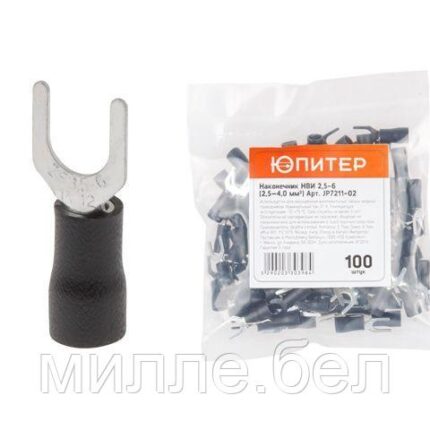 Назначение: для оконцевания методом опрессовки гибких многопроволочных проводников, Тип наконечника: вилочный, Максимальное сечение проводника: 6,0 мм2, Ширина отверстия вилки: 8,4