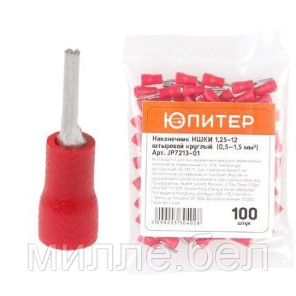 Назначение: для оконцевания методом опрессовки гибких многопроволочных проводников, Тип наконечника: штыревой круглый, Максимальное сечение проводника: 1,5мм2, Длина штыря: 12 мм,
