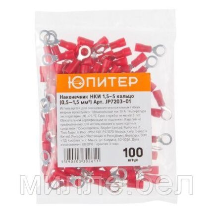Назначение: соединение медных или алюминиевых проводов при монтаже и ремонте электропроводок любых типов зданий и сооружений, Тип наконечника: кольцевой, Максимальное