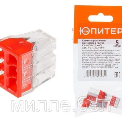 Назначение: используется для соединения медных одножильных или многожильных проводников, для монтажа проводников в распределительной коробке, подключения светильников и другого оборудования,