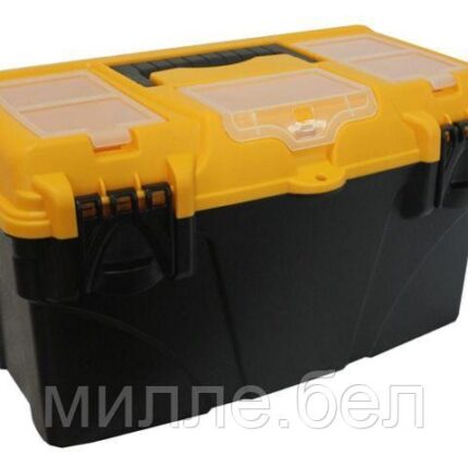 Ящик предназначен для хранения и удобной транспортировки инструментов. Подвижный лоток и два органайзера на крышке позволяют разместить необходимые инструменты и