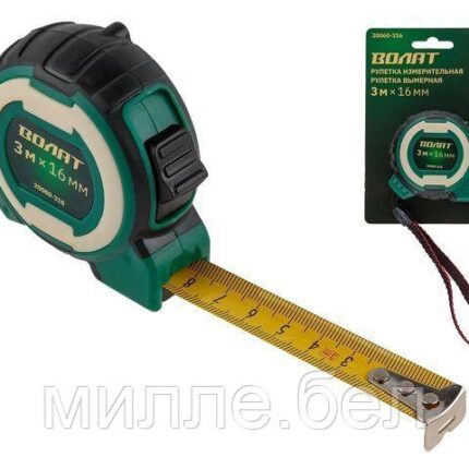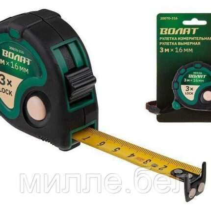 Рулетка 3м/16мм обрезин. корп. ВОЛАТ (3 мех. фиксации, ABS+TPR, 2-х стор. шкала нанесения, 2-х стор.