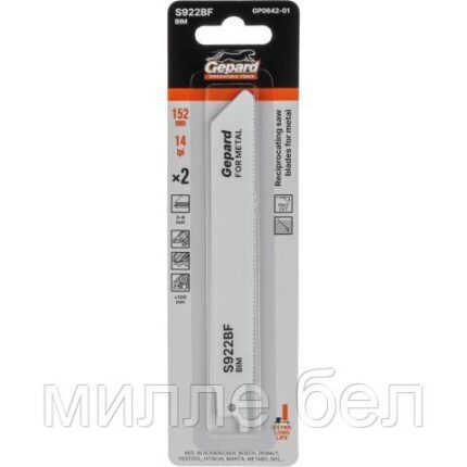 Пилка сабельная по металлу S922BF (2 шт.) GEPARD (152мм, полотно для сабельной пилы, пропил прямой, тонкий,
