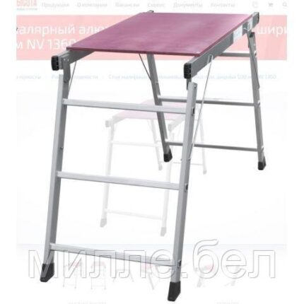 Большая рабочая площадка 755?500 мм. Удобно ставить инвентарь. Стойки и перекладины из алюминиевого профиля. Несъёмный настил из антисептированной фанеры. Рифлёные