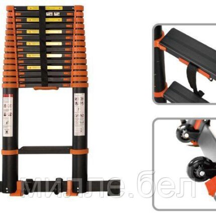 Тип: телескопическая односекционная, Количество ступеней: 13, Расстояние между ступенями, см: 30, Ширина ступени, см: 4, Модификация (высота, см): приставная лестница