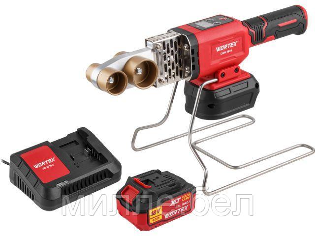 Аккум. сварочный аппарат для полимерных труб WORTEX CWM 1834 ALL1 XLT SET с акб и зу+3 насадки (300 Вт, 25-340