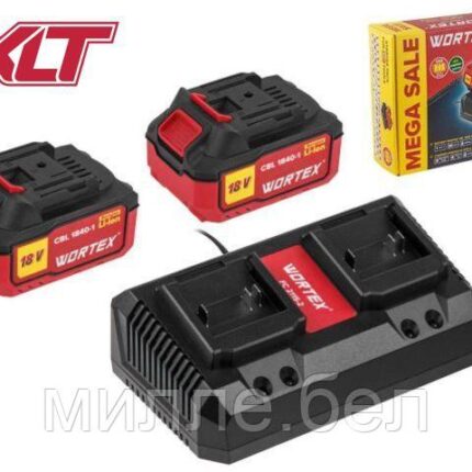 Набор аккумулятор 2х4 А*ч и зарядное устройство 2х2 А WORTEX ALL1 XLT в кор. SET (18.0 В, 2×4.0 А*ч, индикатор