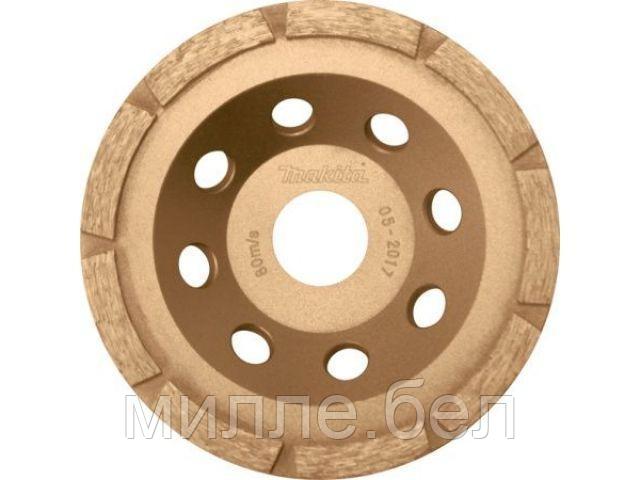 Алмазный тарельчатый диск «Эконом» однорядный Макита Д-60676 предназначен для грубого шлифования бетона. Рекомендуется использовать с угловыми шлифовальными машинами. Диаметр диска составляет 115 мм, а диаметр посадочного отверстия 22,23 мм.