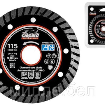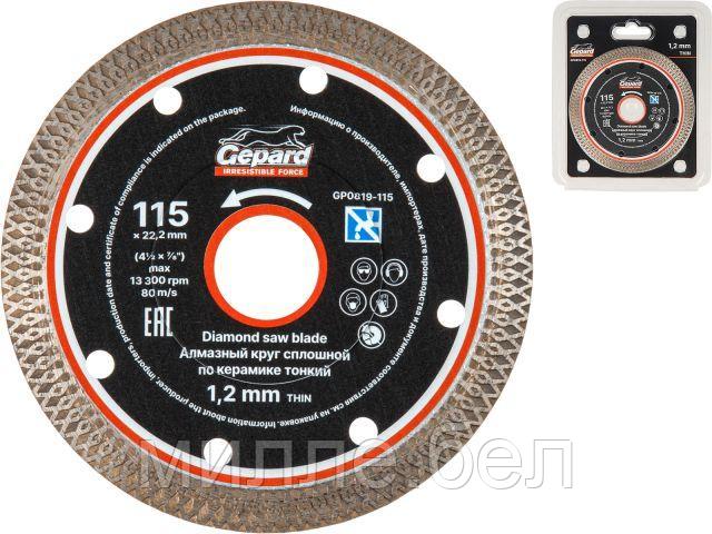 Алмазный круг 115х22 мм по керамике сплошн. тонкий GEPARD (сухая и мокрая резка, тонкий рез 1.2мм, диск)
