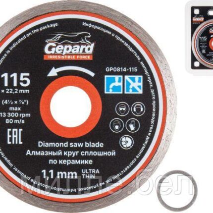 Алмазный круг 115х22 мм по керамике сплошн.ультратонкий GEPARD (сухая и мокрая резка, тонкий рез 1.1мм, диск)