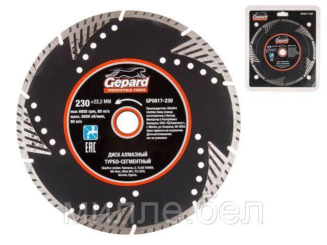 Алмазный круг 230х22 мм турбо-сегментный GEPARD (сухая резка, TURBO-сегментный, диск)