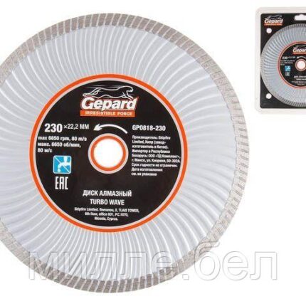Алмазный круг 230х22 мм универс. Turbo Wave GEPARD (турбо, сухая резка, диск)