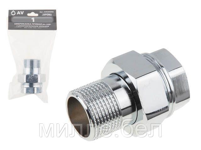Американка прямая 1″ вн.-нар. ХРОМ, AV Engineering (инд. упак.) (с уплотнительным кольцом)