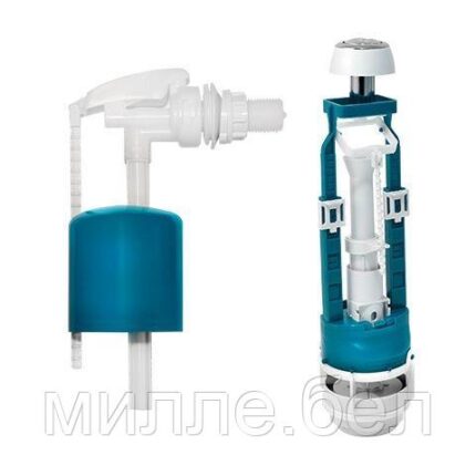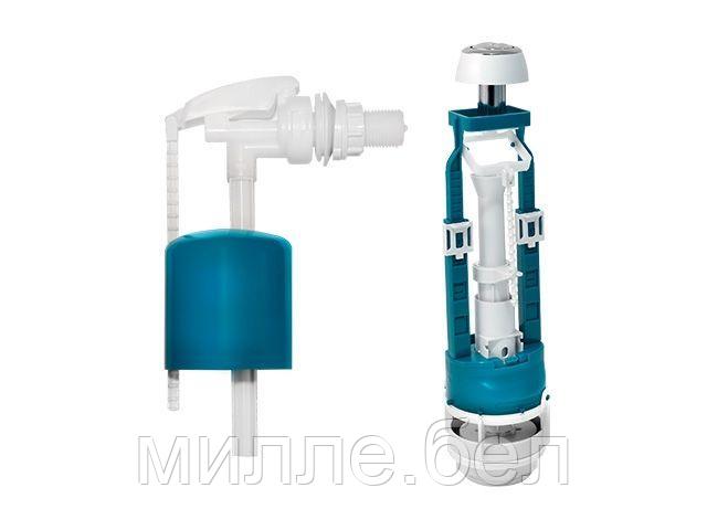 Арматура 1-реж. кноп. механизм СБ1 с кольцом КПМ на бачок D24мм., бок. подводка БпрН, Хром кнопка