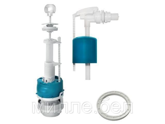 Комплект арматуры для бачка к унитазу. Сливной клапан СБа штоковый (для слива необходимо поднять ручку вверх и отпустить). Система «СТОП