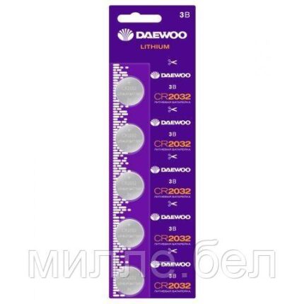 Батарейка CR2032 3V lithium 5шт.(блистер) DAEWOO (Литиевая)