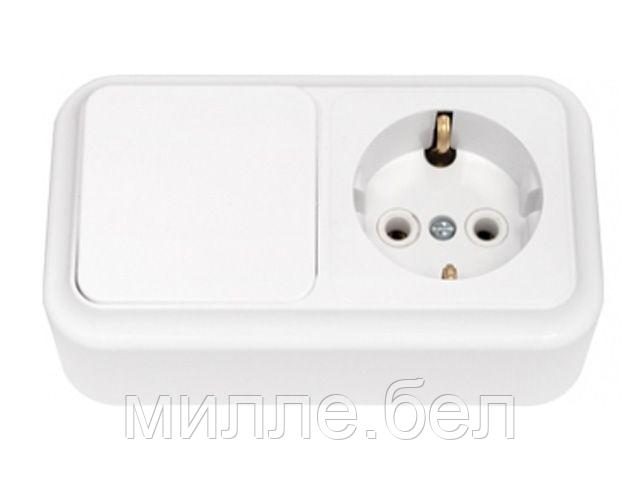 Блок выкл. 1 клав. + розетка (открытая, б/з) белая, Пралеска, BYLECTRICA
