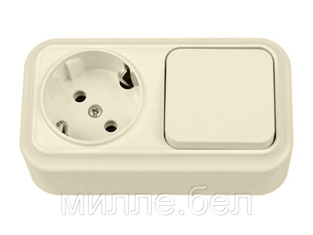 Блок выкл. 1 клав. + розетка (открытая, с/з) бежеваяя, Вариант, BYLECTRICA