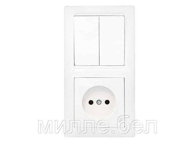 Блок выкл. 2 клав. + розетка (скрытая, б/з) белая, Стиль, Bylectrica