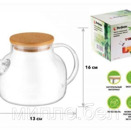 Чайник заварочный, стеклянный, 1300 мл, BAMBOO, PERFECTO LINEA