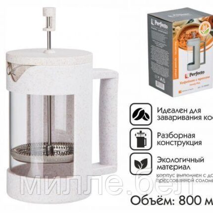Кофейник с прессом, 800 мл, Handy Plus, PERFECTO LINEA (материал: пресованная солома+пластик)