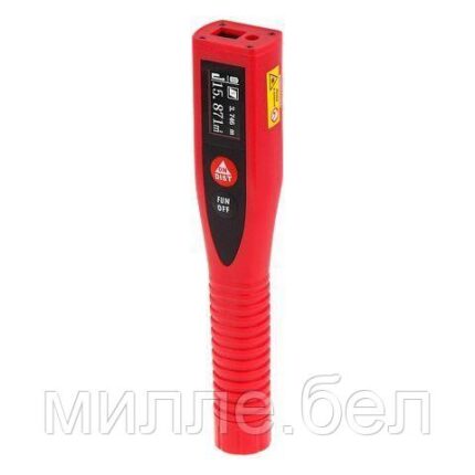 Цифровой лазерный дальномер оснащен современными лазерными технологиями, что гарантирует высокую точность и надежность результатов измерения. Функционально прибор измеряет — длину, площадь, объем, возможно применение теоремы Пифагора. Для удобства использования в слабоосвещенных помещениях предустмотрена подсветка дисплея. Прибор оснащен функцией измерения угла: отклонения от горизонтальной плоскости до 50 градусов. Дальномер имеет прорезиненный корпус. В комплекте поставки есть цель.