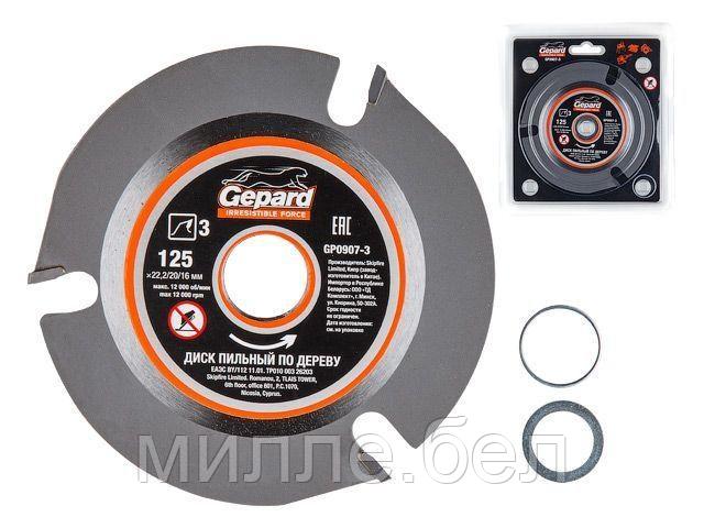Диск пильный 125х22.2/20/16 мм 3 зуб. по дереву GEPARD (для УШМ, твердоспл. зуб)