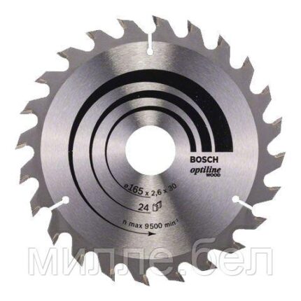 Диск пильный 165х30 мм 24 зуб. по дереву OPTILINE WOOD BOSCH (твердоспл. зуб)