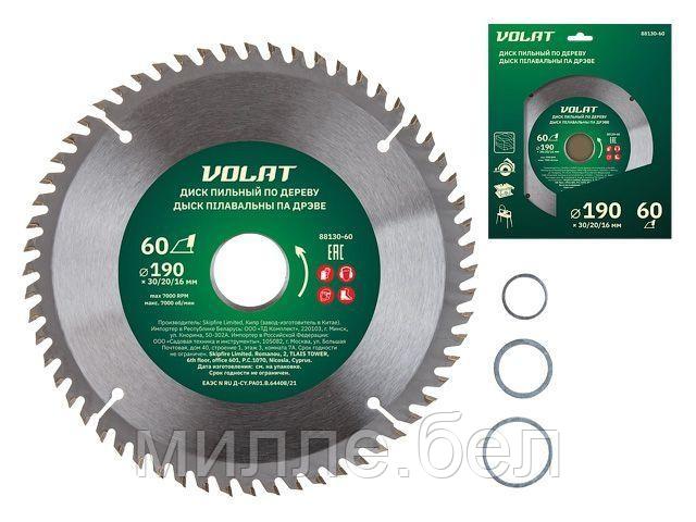 Диск пильный 190х30/20/16 мм 60 зуб. по дереву ВОЛАТ (твердоспл. зуб)