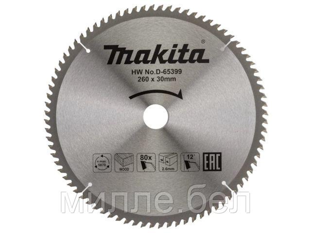 Диск пильный 260х30х2,6 мм 80 зуб. по дереву MAKITA (твердоспл. зуб)