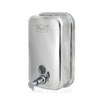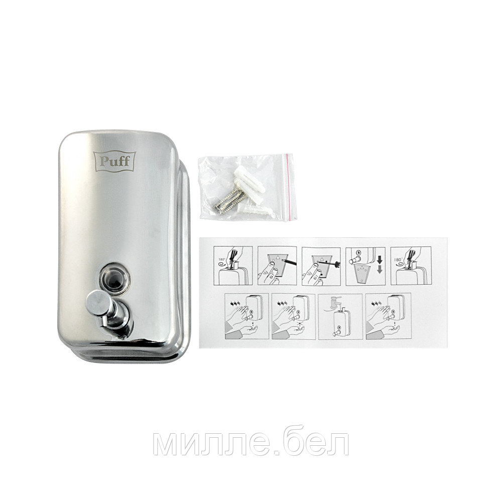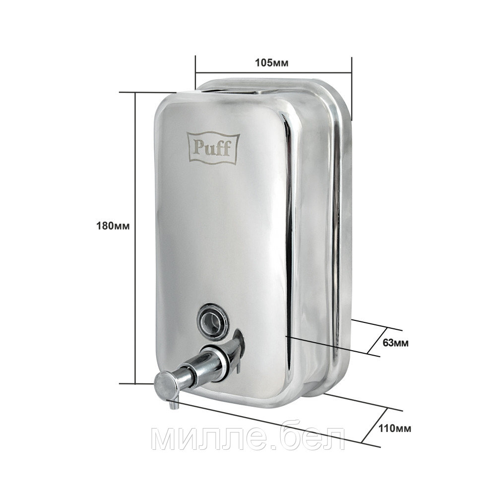 Дозатор для жидкого мыла PUFF-8608 сделан из нержавеющей стали марки AISI 304 (ГОСТ 08Х18Н10) с хромированным покрытием (глянец, блестящий). Нержавейка из которой он сделан относится к высококачественной и наиболее стойкой к коррозии. Блестящая хромированная полировка выделит его глянцевый корпус в интерьере туалетной комнаты и придаст ей ощущение блеска и цены. Кнопка дозатора сделана из латуни. Стальной корпус диспенсера для жидкого мыла придает ему антивандальные свойства, ему крайне тяжело нанести механические и термические повреждения (разбить и поджечь).