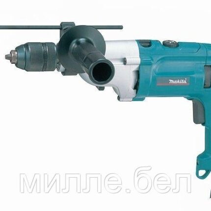Двухскоростной редуктор и электронная регулировка частоты вращения шпинделя позволяет выбрать оптимальные обороты и крутящий момент при выполнении конкретных задач! Корпус из алюминиевого сплава обеспечивает долговечность изделия и отвод тепла. Переключатель режимов работы сверление сверление с ударом расположен на верхней части корпуса редуктора и не выступает за габариты копусных деталей. Фиксация выключателя во включенном положении обеспечивает удобную работу в непрерывном режиме.