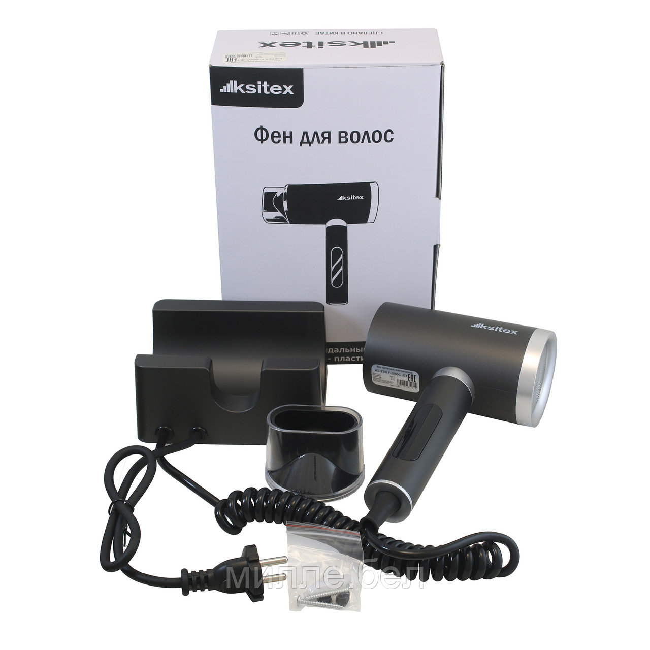 В корпусе фена установлен долговечный двигатель, ионизатор и новый современный нагревательный элемент.