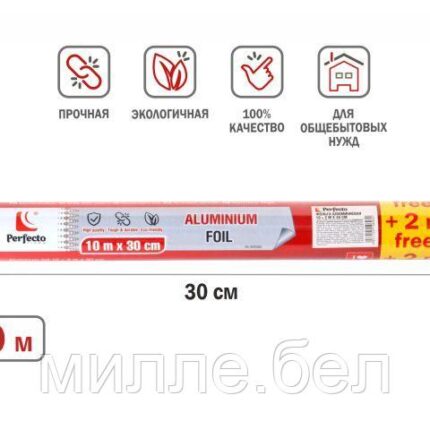 Фольга алюминиевая 10+2м х 30 см, PERFECTO LINEA (100% качество. Длина 10 м + 2 м бесплатно, ширина 30 см,