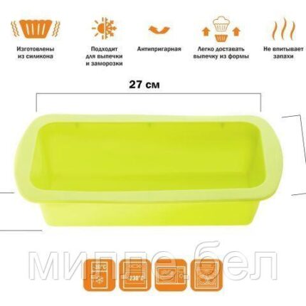 Форма для выпечки, силиконовая, прямоугольная, 27 х 13.5 х 6 см, зеленая, PERFECTO LINEA
