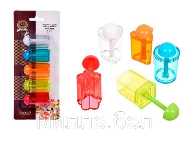 С помощью формочек можно приготовить канапе 5 разных форм (круг, квадрат, треугольник, цветок, сердце).