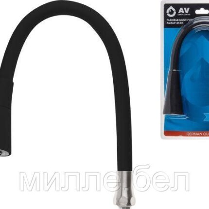 Излив гибкий с двухрежимной лейкой черный для смесителя, AV Engineering (Диаметр подключения 3/4″)