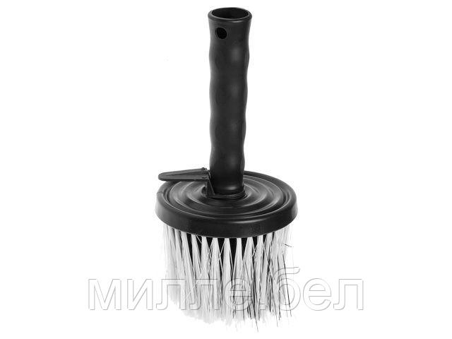 Конструкция: щетина надежно впрессована в пластмассовый корпус круглой формы. Съемная пластмассовая ручка, имеет отверстие для подвешивания, а также специальное приспособление для крепления на емкость,