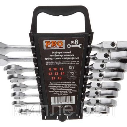 Набор ключей комбинир. 8-19мм 8шт трещоточных шарнирн. PRO STARTUL (PRO-7308)