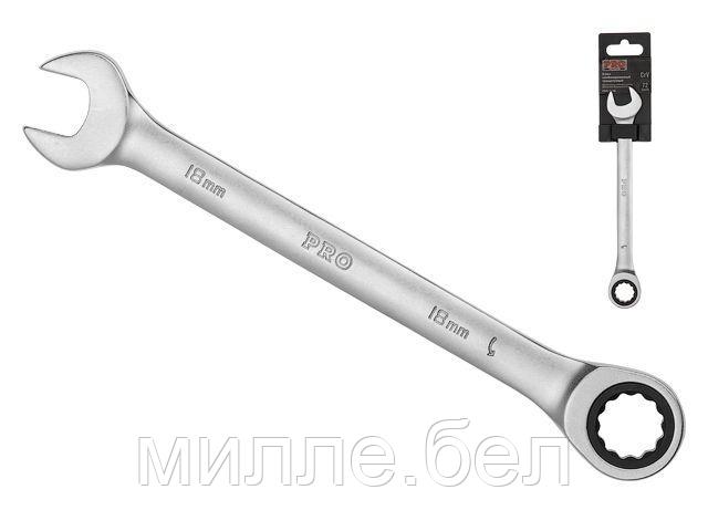 Ключ комбинированный 18мм трещоточный PRO STARTUL (PRO-7018) (сатинированное покрытие, 72 зуба)