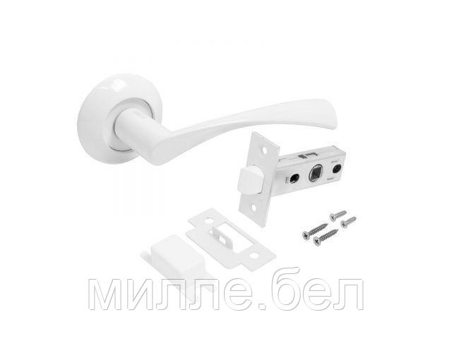 Комплект ручка и защелка АЛЛЮР АРТ «ОСКАР» W+L45-8 W (13110/S45) матовый белый (20) (компл) (УЗК)