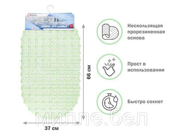 Коврик для ванной, овал 66х37 см, зеленый, PERFECTO LINEA