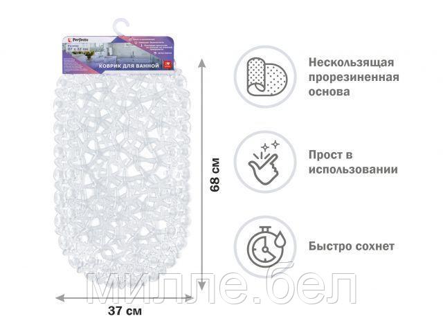 Коврик для ванной, овал с морскими звездами, 68х37 см, прозрачный, PERFECTO LINEA