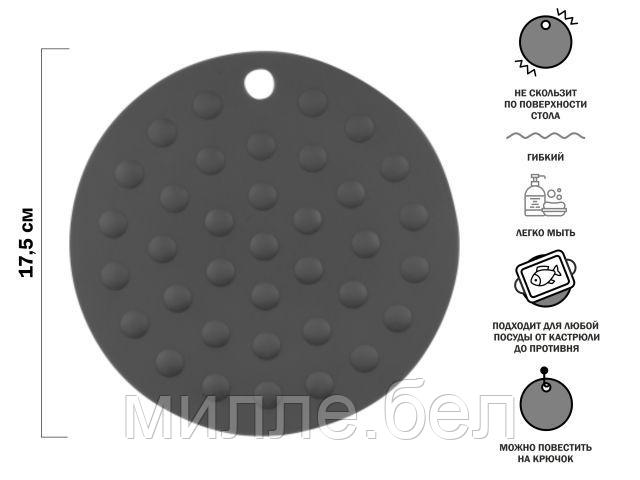 Коврик под горячее силиконовый, круглый, 17.5 х 0.2 см, GRAPHITE, PERFECTO LINEA