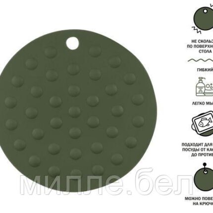 Коврик под горячее силиконовый, круглый, 17.5 х 0.2 см, NATURAL GREEN, PERFECTO LINEA