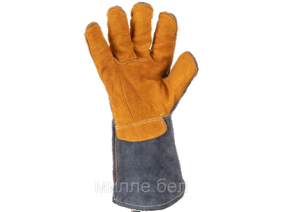 Краги спилковые пятипалые усиленные(на подкладке из х/б и флиса) р-р 10/XL, JetaSafety (эластичная тесьма на