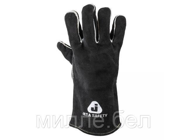 Перчатки сварщика Jeta Safety с крагой из спилковой кожи с подкладкой из хлопчатобумажной ткани и флиса, цвет черный
