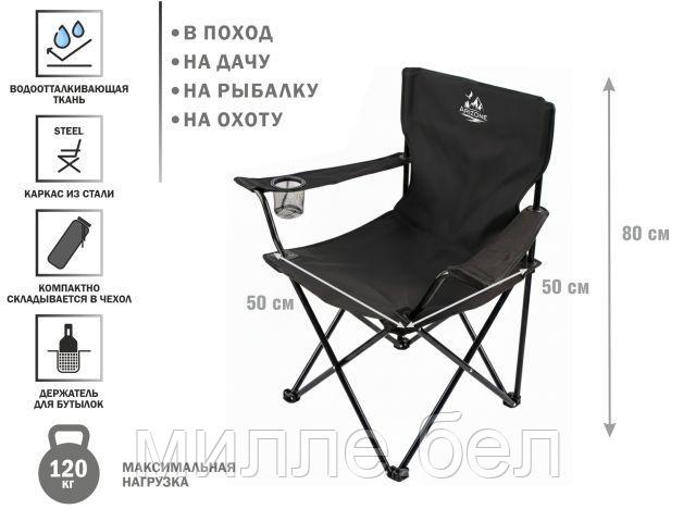 Кресло складное кемпинговое с держателем для бутылок + чехол, черное, серия Coyote, ARIZONE